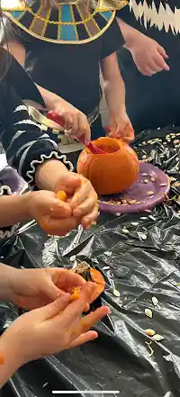 - We carved a pumpkin together, discussing its shape, texture, and smell.