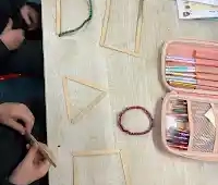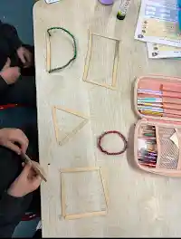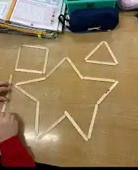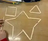 - The children explored 2D shapes by using lollipop sticks to construct and name different shapes.