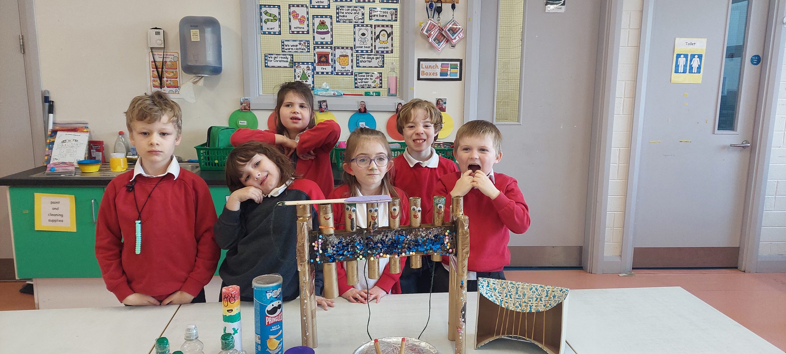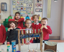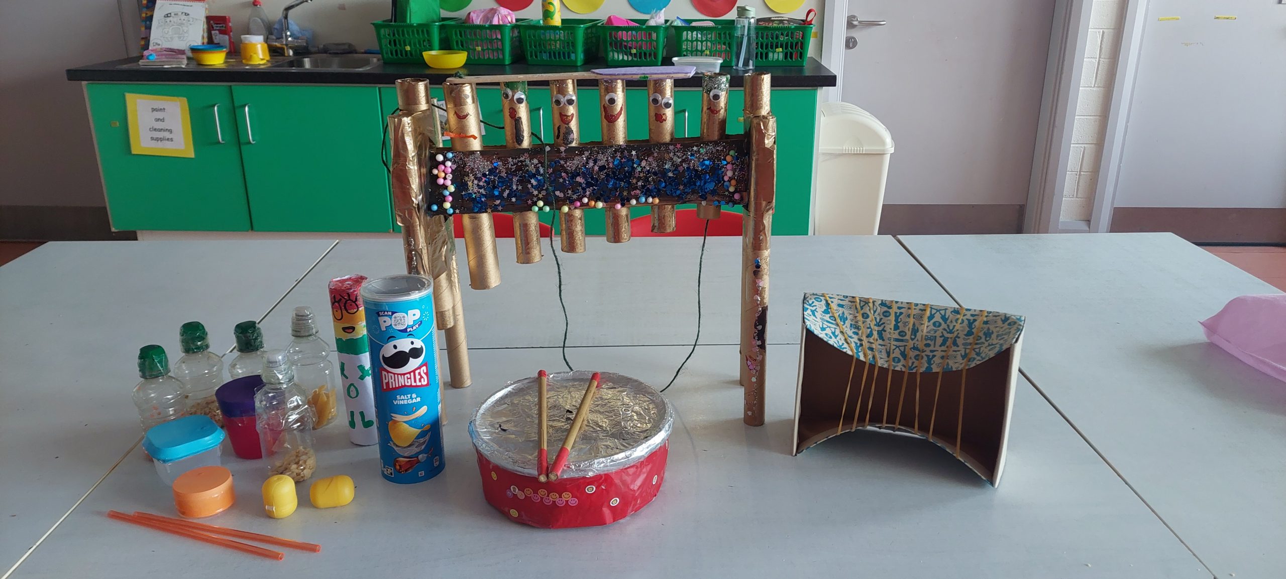 Music Time in M. Caroline’s Class Ruairi, Oliver, Ceili, Zoe, Ava and Caleb made musical instruments. We had drums, shakers, elastic guitar and a Slapaphone!